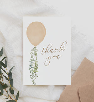 Say thank you to your baby shower guests with this gold balloon folded thank you card design! This is a template that you can edit yourself at Corjl.com, then download and print with a printing service of your choice.