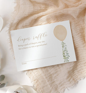 Invite friends and family to bring a pack of diapers to you or your loved one's baby shower with this gold balloon diaper raffle ticket! This is a template that you can edit yourself at Corjl.com, then download and print with a printing service of your choice.