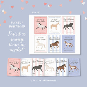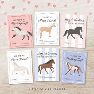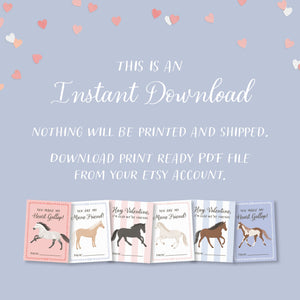 This listing is for an instant download, print-ready set of 6 horse themed Valentine's Day cards. The following files will be included with your purchase: