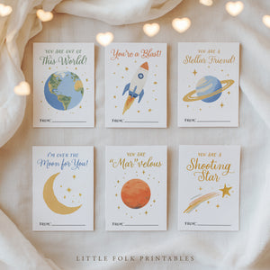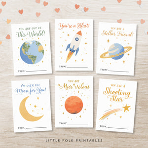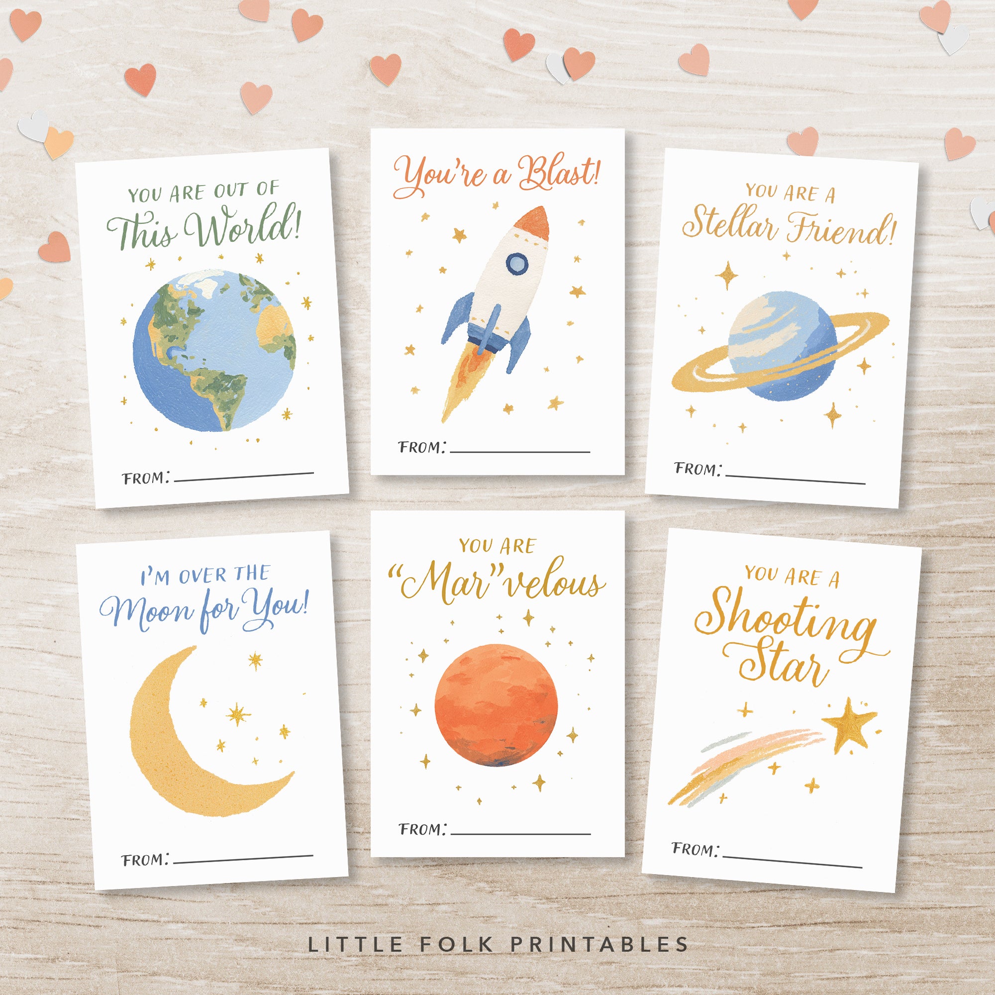 This listing is for an instant download, print-ready set of 6 outer space themed Valentine's Day cards. The following files will be included with your purchase:
