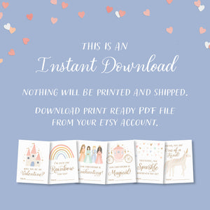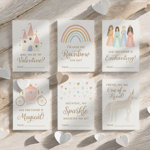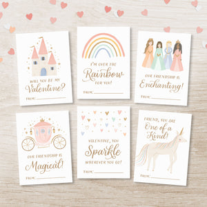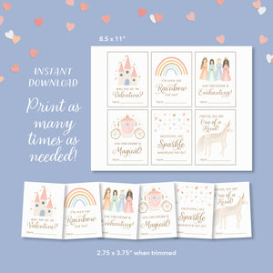 This listing is for an instant download, print-ready set of 6 princess themed Valentine's Day cards. The following files will be included with your purchase: