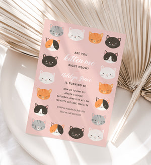Celebrate your little one's special day with this kitten themed birthday party invitation! This is a template that you can edit yourself at Corjl.com, then download and print with a printing service of your choice or send as an evite.