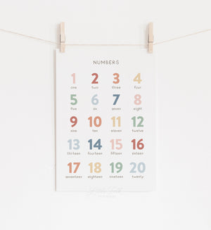 Introduce your kiddo to their numbers 1-20 with this colorful poster. Decorate a wall in your little one's nursery, bedroom, or playroom with this educational print to encourage learning everyday.