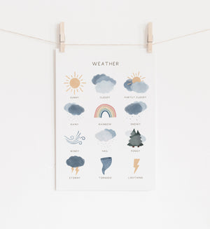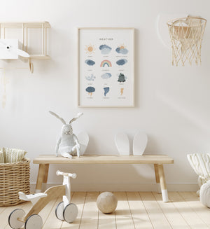 Introduce your kiddo to the weather with this simple illustrated poster. Decorate a wall in your little one's nursery, bedroom, or playroom with this educational print to encourage learning everyday.
