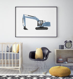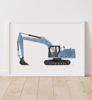 Excavator Horizontal Print - Blue