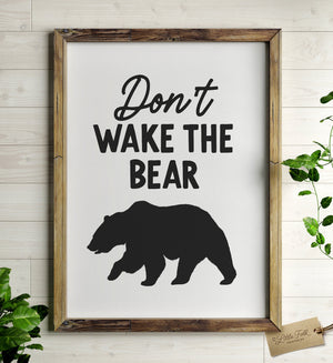 A warning to all those who enter! This print is perfect for your little bear's woodland-themed room.