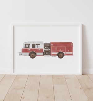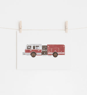 Decorate your little one's space with this watercolor fire truck print!
