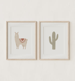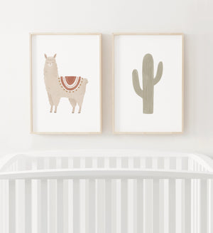 Decorate your little one's space with this adorable set of two llama and cactus prints!