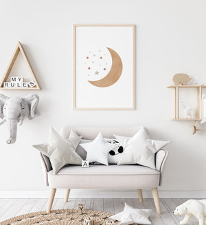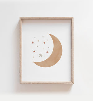 Decorate your little one's space with this neutral watercolor moon and stars print!
