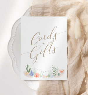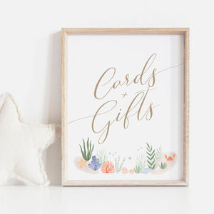 This listing is for an instant download, print-ready Cards and Gifts sign in the 'Under the Sea' baby shower theme. The following files will be included with your purchase: