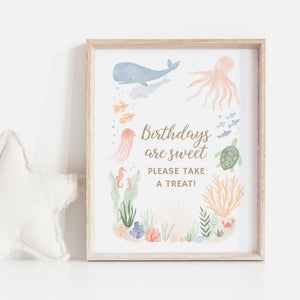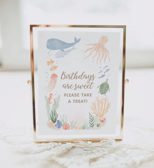 This listing is for an instant download, print-ready 'Take a Treat' sign in the 'Under the Sea' birthday party theme. The following files will be included with your purchase: