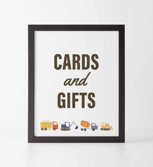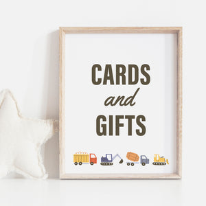 This listing is for an instant download, print-ready Cards and Gifts sign in the construction birthday party theme. The following files will be included with your purchase: