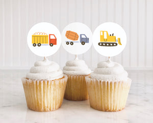 This listing is for 6 instant download, print-ready construction birthday cupcake topper designs. Use as cupcake toppers, favor tags, stickers, etc. The following files will be included with your purchase: