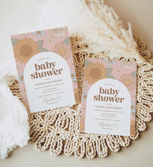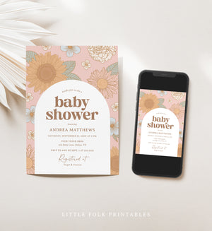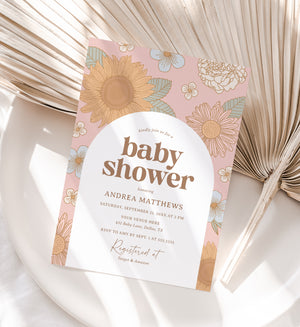 Editable Retro Wildflower Baby Shower Invitation Template