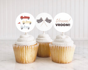 This listing is for 6 instant download, print-ready race car birthday cupcake topper designs. Use as cupcake toppers, favor tags, stickers, etc. The following files will be included with your purchase: