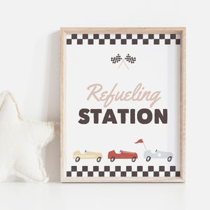 This listing is for an instant download, print-ready 'Refueling Station' sign in the race car birthday party theme. The following files will be included with your purchase: