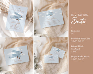 Throw the perfect airplane baby shower with this bundle of templates to fit your theme. Edit yourself at Corjl.com, then download and print at home or with a printing service of your choice.