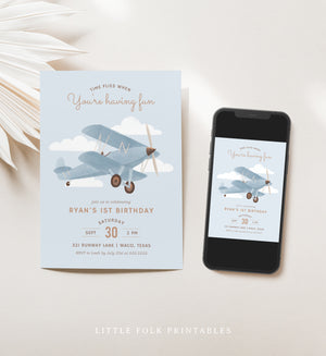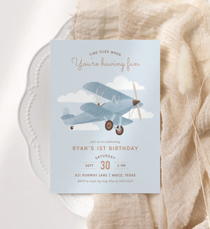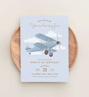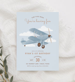 Celebrate your little one's special day with this airplane birthday party invitation! This is a template that you can edit yourself at Corjl.com, then download and print with a printing service of your choice or send as an evite.