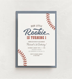 Celebrate your little one's special day with this baseball birthday party invitation! This is a template that you can edit yourself at Corjl.com, then download and print with a printing service of your choice or send as a digital invitation.