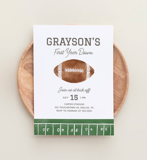 Celebrate your little one's special day with this football birthday party invitation! This is a template that you can edit yourself at Corjl.com, then download and print with a printing service of your choice or send as a digital invitation.