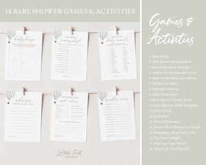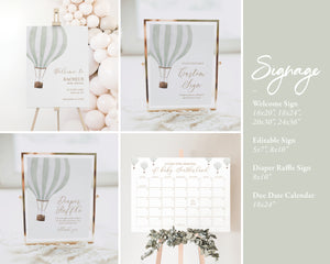 Editable Green Hot Air Balloon Baby Shower Invitation Bundle