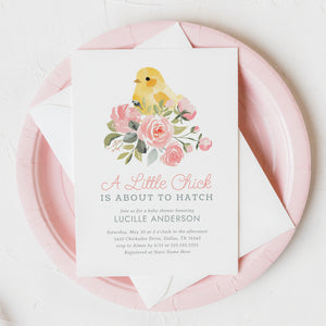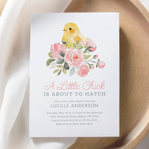 Celebrate a little one on the way with this floral chick baby shower invitation! This is a template that you can edit yourself at Corjl.com, then download and print with a printing service of your choice or send as a digital invitation.