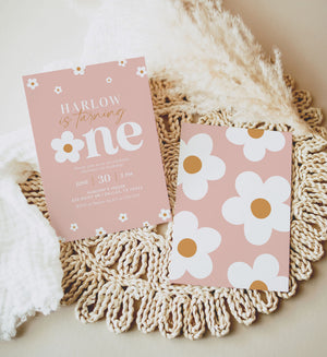 Editable Pink Daisy 1st Birthday Invitation Template