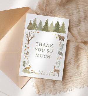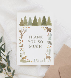 Editable Woodland Baby Shower Folded Thank You Card Template