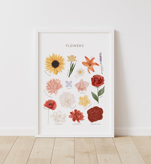 Introduce your kiddo to their common flowers with this realistic illustrated poster. Decorate a wall in your little one's nursery, bedroom, or playroom with this educational print to encourage learning everyday.