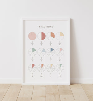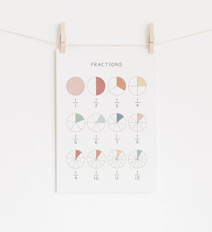 Teach your kiddo about fractions with this colorful poster. Decorate a wall in your little one's nursery, bedroom, or playroom with this educational print to encourage learning everyday. Download, print, and trim your art within minutes or send it to your local print shop.