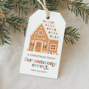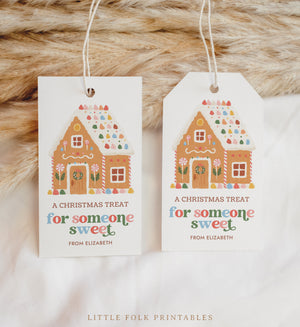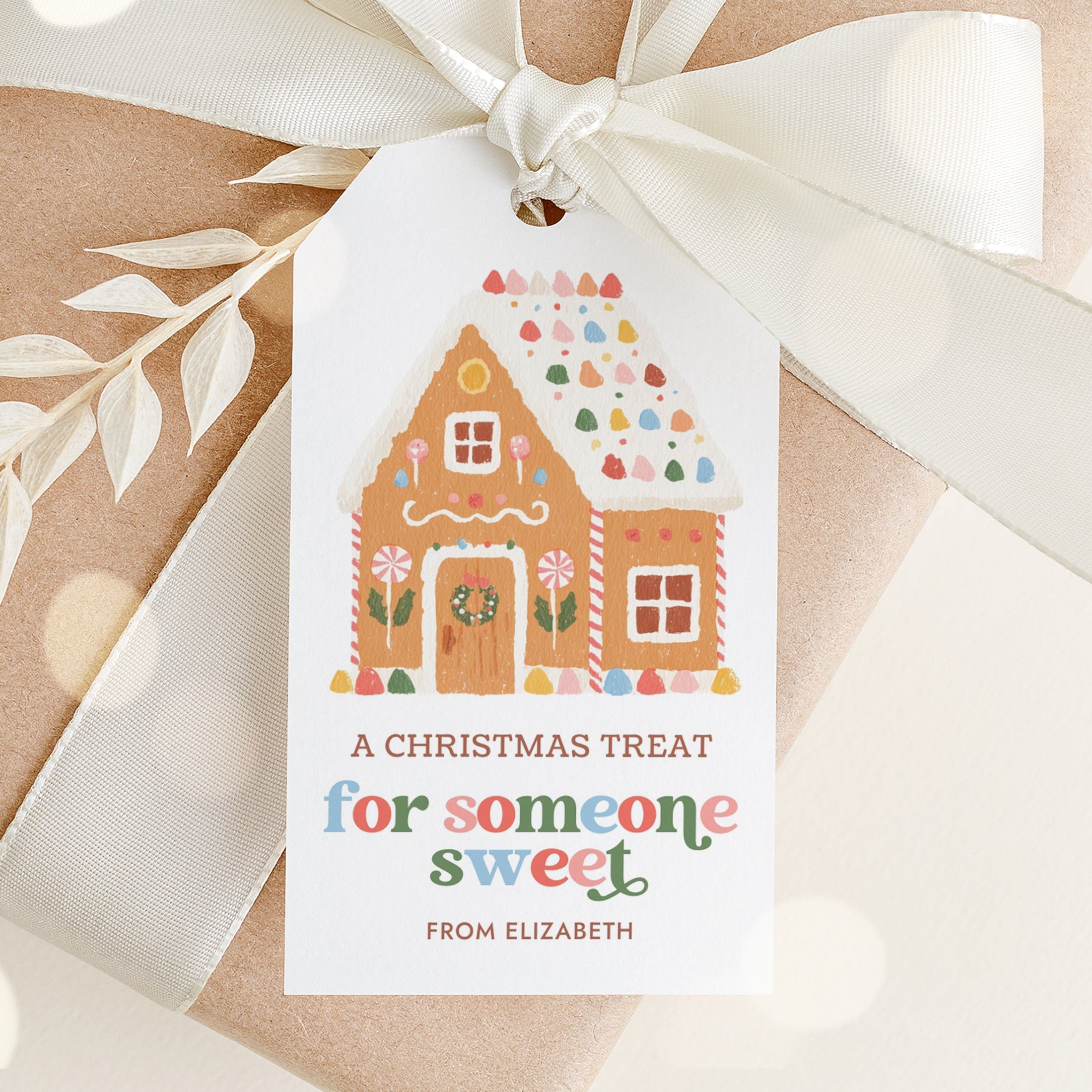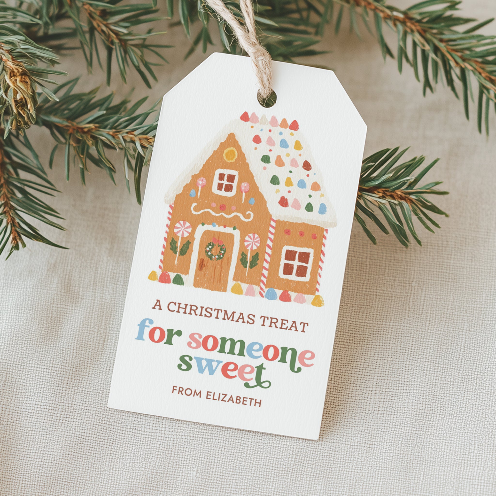 Say Merry Christmas to friends and family with this festive holiday gingerbread house gift tag. This is a template that you can edit yourself at Corjl.com, then download and print with a printing service of your choice.