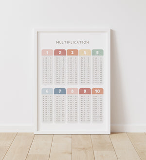 Teach your kiddo about multiplication with this colorful poster. Decorate a wall in your little one's nursery, bedroom, or playroom with this educational print to encourage learning everyday. Download, print, and trim your art within minutes or send it to your local print shop.
