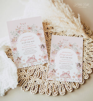 Celebrate a little one on the way with this fairy baby shower invitation! This is a template that you can edit yourself at Corjl.com, then download and print with a printing service of your choice or send digitally.