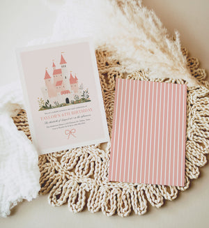 Celebrate your little one's special day with this princess birthday party invitation! This is a template that you can edit yourself at Corjl.com, then download and print with a printing service of your choice or send as a digital invitation.