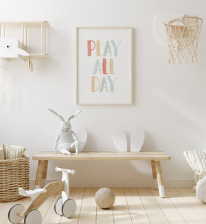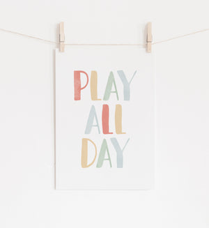 Decorate your little one's playroom or bedroom with this colorful 'play all day' print!