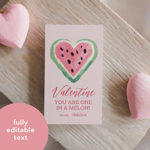 Add a finishing touch to your child's Valentines with this watermelon themed tag. This is a template that you can edit yourself at Corjl.com, then download and print at home or with a printing service of your choice.