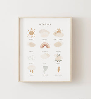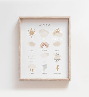 Introduce your kiddo to the weather with this simple illustrated poster. Decorate a wall in your little one's nursery, bedroom, or playroom with this educational print to encourage learning everyday.