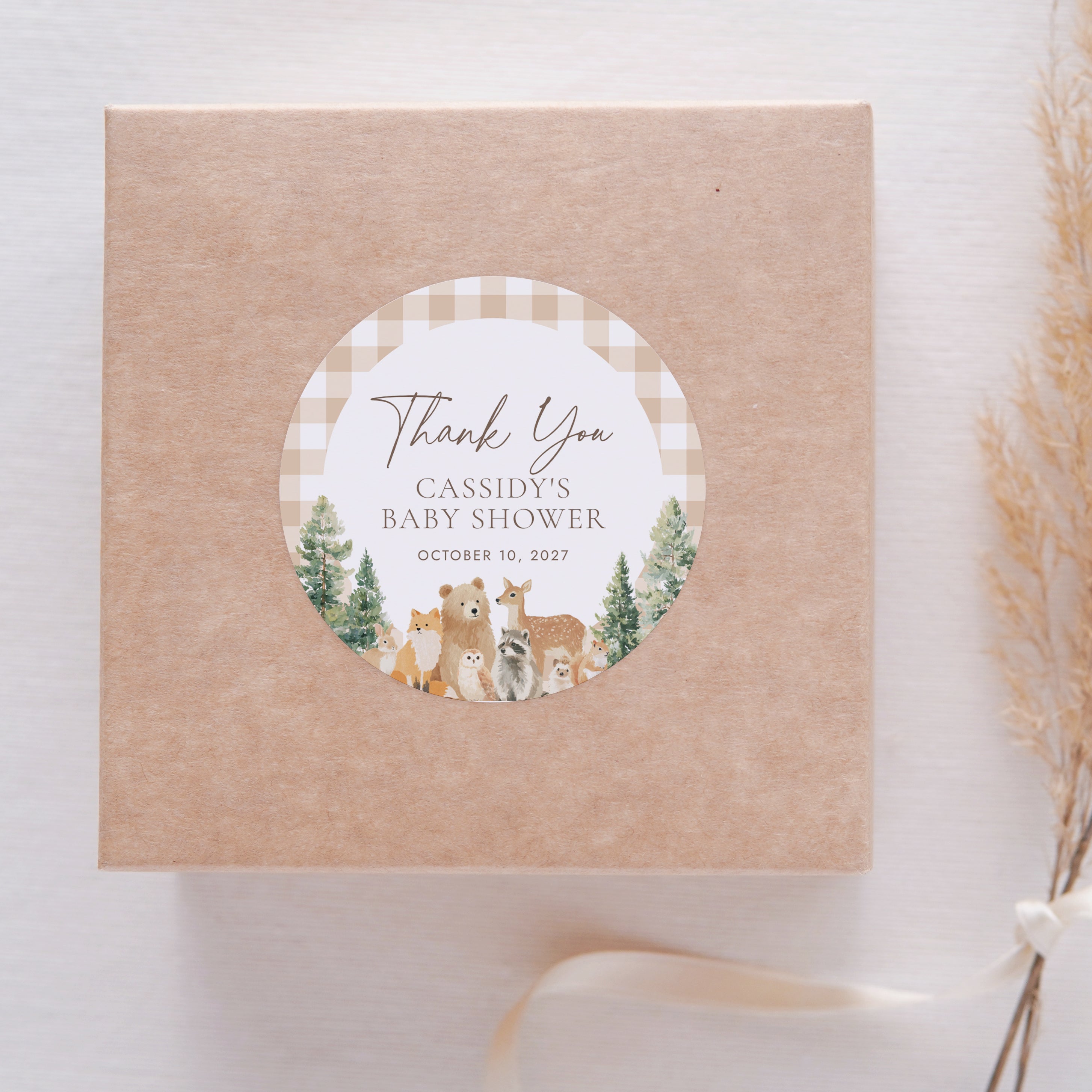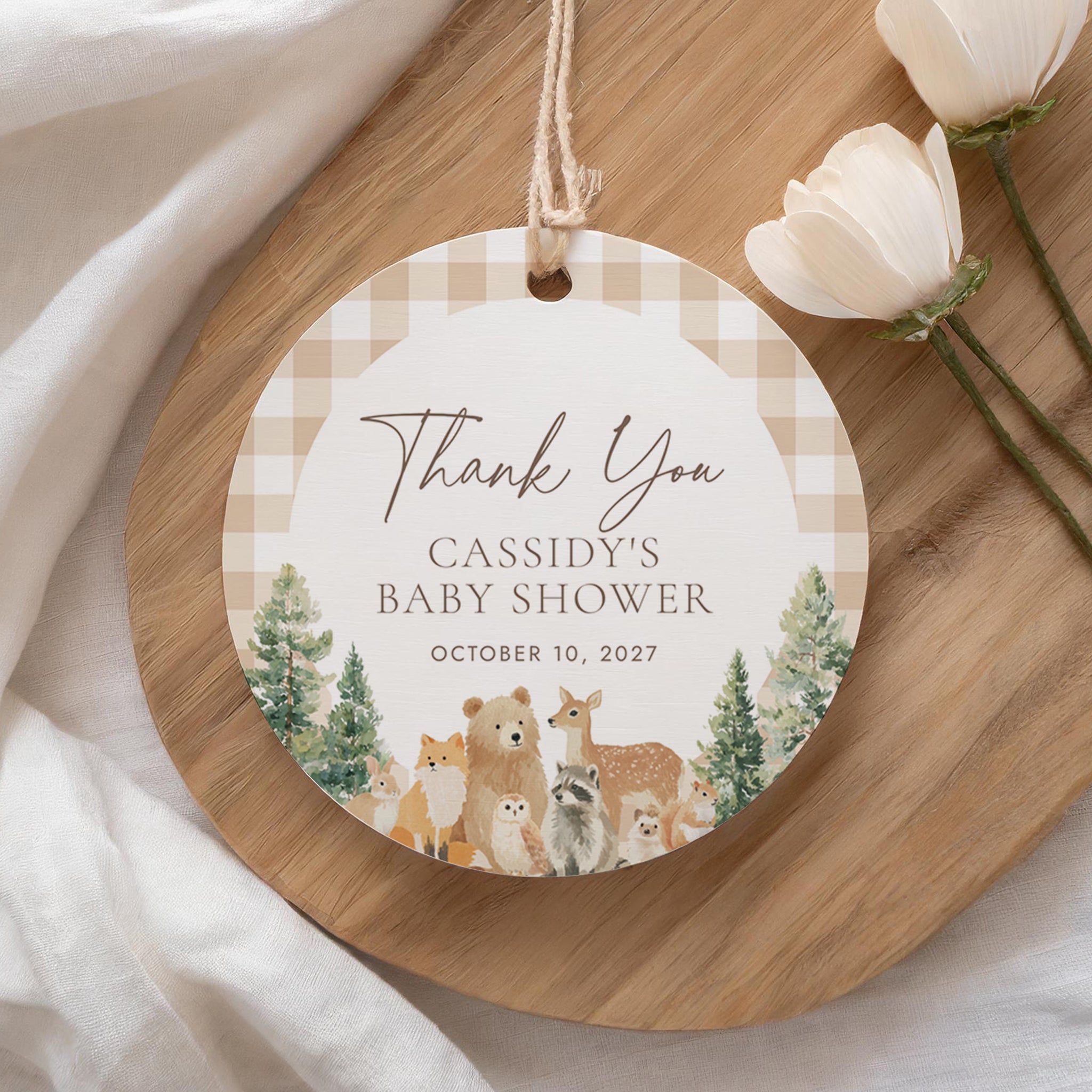 Woodland Gingham Baby Shower Round Tag
